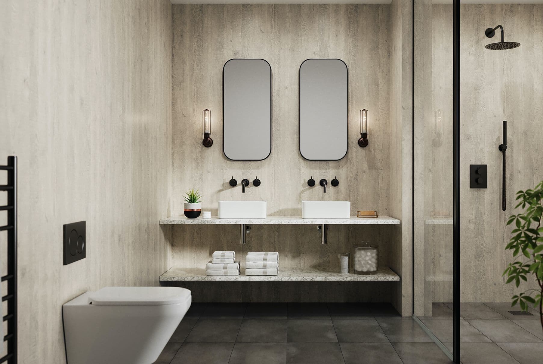 In realistic marble, stone, wood and tile effects, Nuance means design freedom - helping you achieve a high-end, boutique bathroom finish in any home.